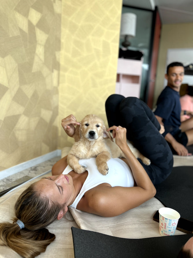 Start with 45 minutes of all-level flow Yoga, surrounded by playful puppies in our studio. Then it is Puppy time ! Cuddles, pictures and playtime with the puppies for 30 minutes.